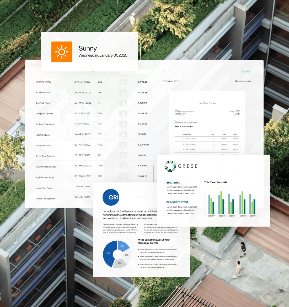 Easily export reports aligned with global standards like GRESB and GRI.