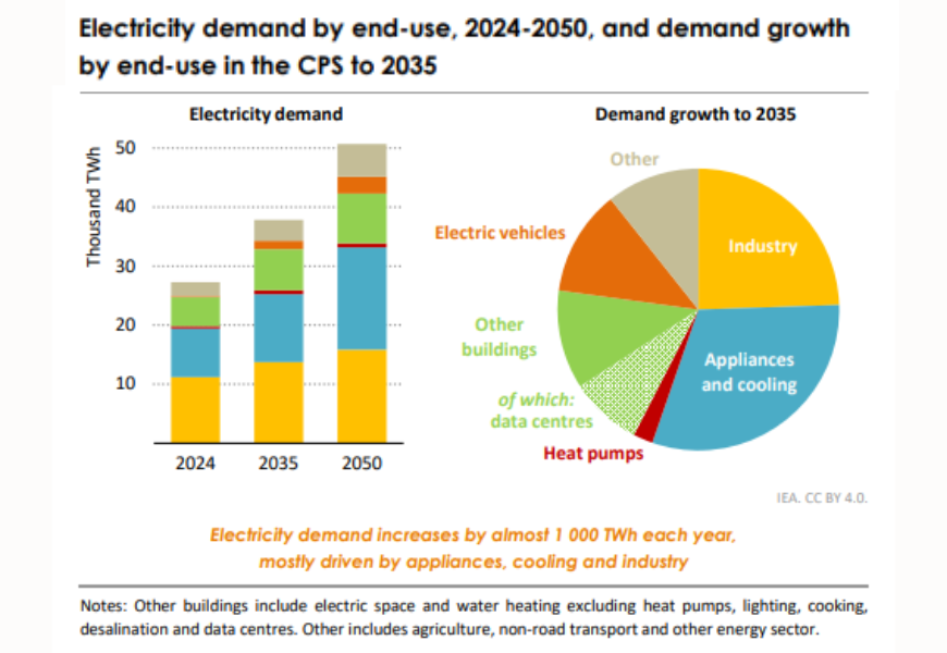 Global electricity demand is rising faster than expected, and companies with high energy use are becoming central players in this shift. Manufacturing lines, construction machinery, digital infrastructure, cooling systems, and data centers are all drawing increasingly large electrical loads. According to the World Energy Outlook 2025, electricity demand under the Stated Policies Scenario grows by nearly forty percent by 2035, driven by industrial automation, electrified equipment, electric transport, and the rapid expansion of digital workloads. These trends create new operational pressures such as higher demand charges, grid congestion, and connection delays, but they also present opportunities to strengthen resilience and reduce long term operating costs through structured electrification planning.